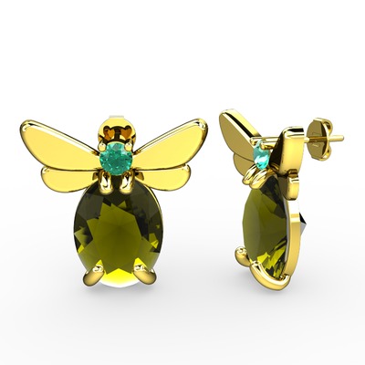 Peridot ve yeşil kuvars 18 ayar altın küpe