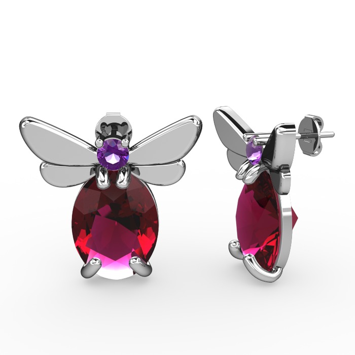 Rodolit garnet ve ametist 14 ayar beyaz altın küpe