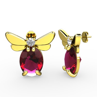 Rodolit garnet ve beyaz zirkon 14 ayar altın küpe