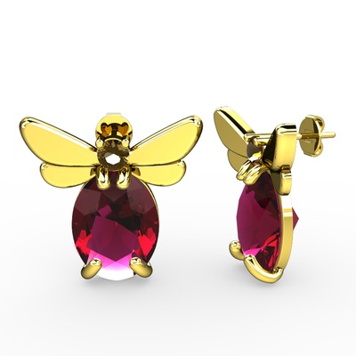 Rodolit garnet ve dumanlı kuvars 8 ayar altın küpe