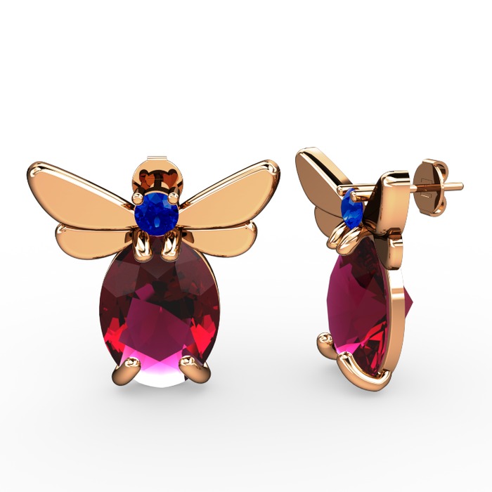 Rodolit garnet ve lab safir 925 ayar rose altın kaplama gümüş küpe