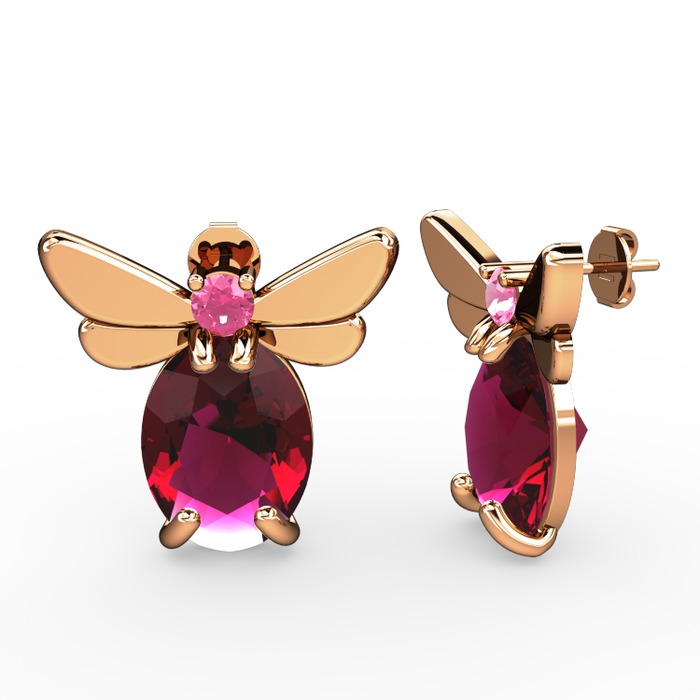 Rodolit garnet ve pembe kuvars 8 ayar rose altın küpe