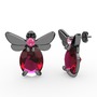 Rodolit garnet ve pembe kuvars 925 ayar siyah rodyum kaplama gümüş küpe