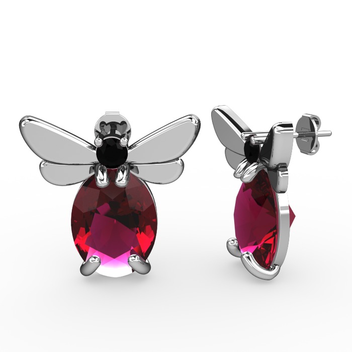 Rodolit garnet ve siyah zirkon 18 ayar beyaz altın küpe