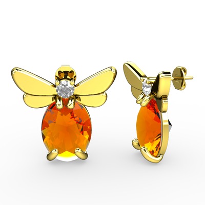 Sitrin ve beyaz zirkon 18 ayar altın küpe