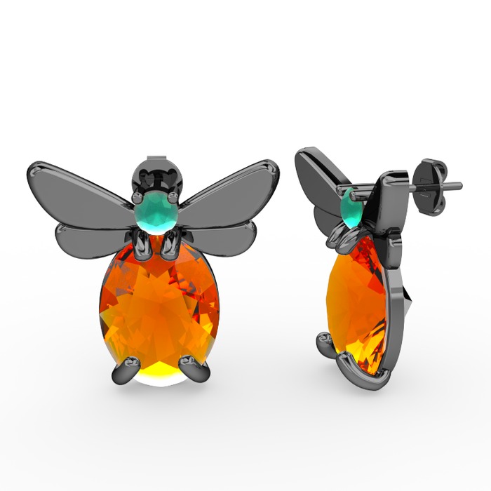 Sitrin ve kök zümrüt 925 ayar siyah rodyum kaplama gümüş küpe