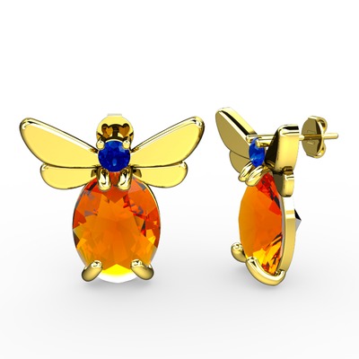 Sitrin ve lab safir 18 ayar altın küpe