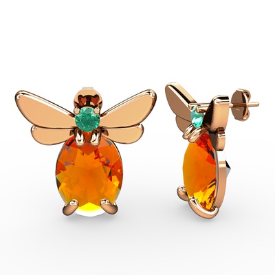 Sitrin ve yeşil kuvars 14 ayar rose altın küpe
