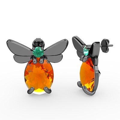Sitrin ve yeşil kuvars 925 ayar siyah rodyum kaplama gümüş küpe