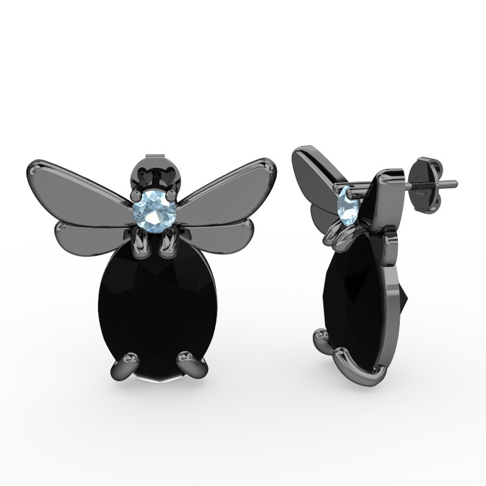 Siyah zirkon ve akuamarin 925 ayar siyah rodyum kaplama gümüş küpe