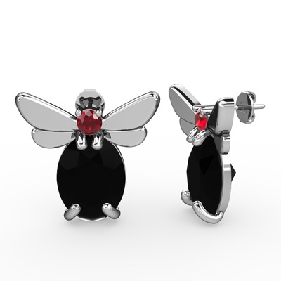 Siyah zirkon ve garnet 18 ayar beyaz altın küpe