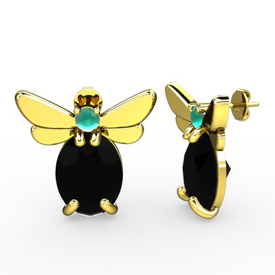 Siyah zirkon ve kök zümrüt 925 ayar altın kaplama gümüş küpe