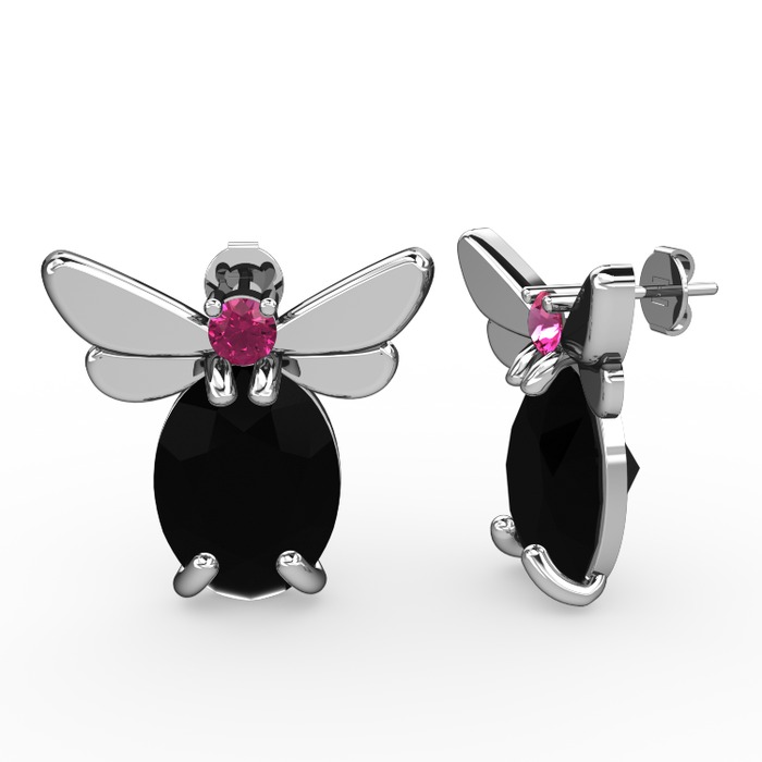 Siyah zirkon ve rodolit garnet 925 ayar gümüş küpe