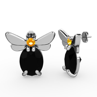 Siyah zirkon ve sitrin 18 ayar beyaz altın küpe