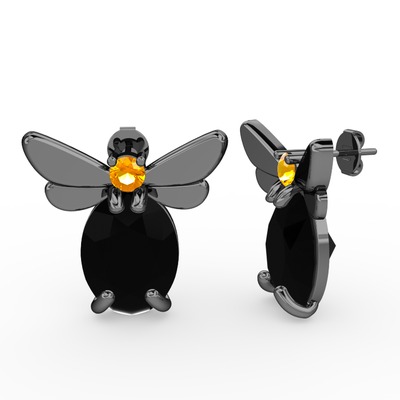 Siyah zirkon ve sitrin 925 ayar siyah rodyum kaplama gümüş küpe