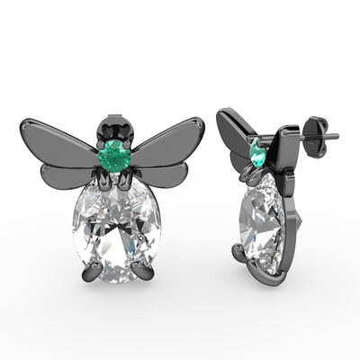 Swarovski ve yeşil kuvars 925 ayar siyah rodyum kaplama gümüş küpe