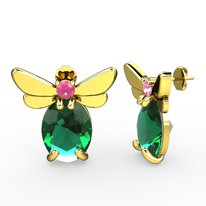 Yeşil kuvars ve pembe kuvars 8 ayar altın küpe