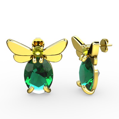 Yeşil kuvars ve peridot 8 ayar altın küpe