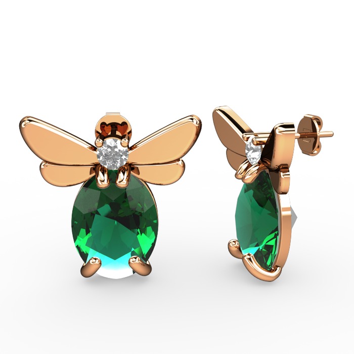 Yeşil kuvars ve pırlanta 14 ayar rose altın küpe (0.22 karat)