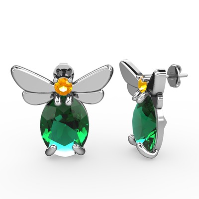 Yeşil kuvars ve sitrin 18 ayar beyaz altın küpe