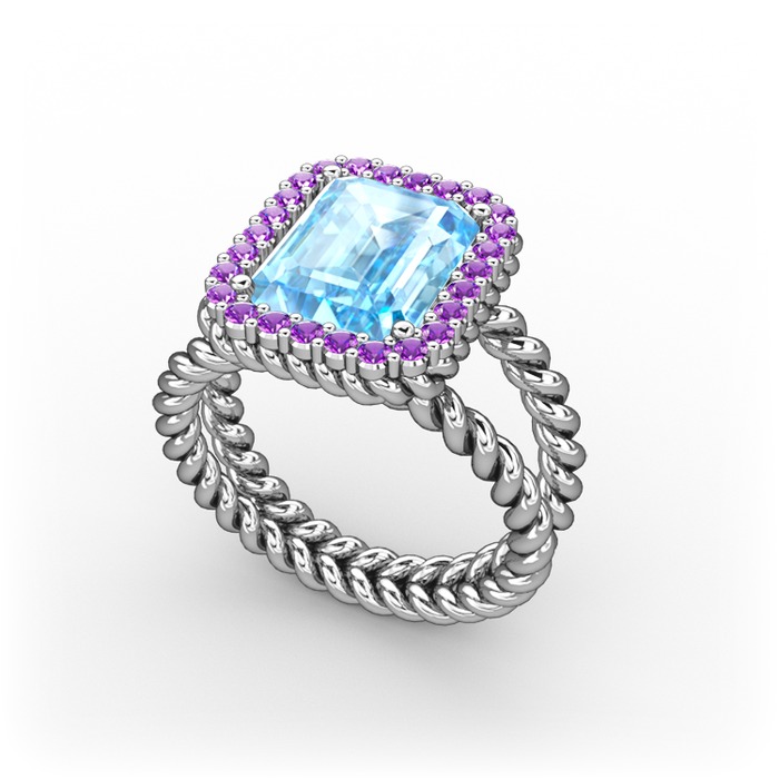 Akuamarin ve ametist 925 ayar gümüş yüzük
