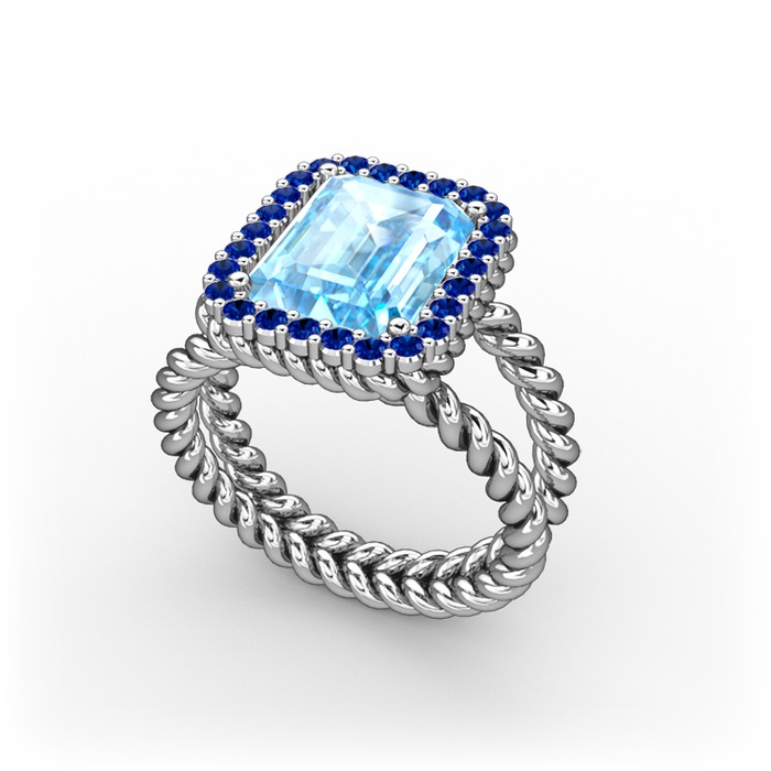 Akuamarin ve lab safir 14 ayar beyaz altın yüzük