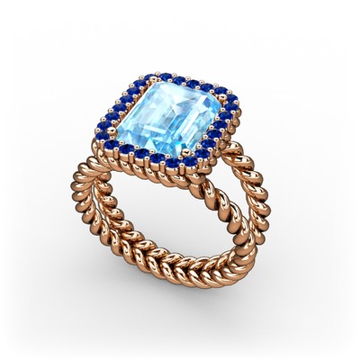 Akuamarin ve lab safir 18 ayar rose altın yüzük