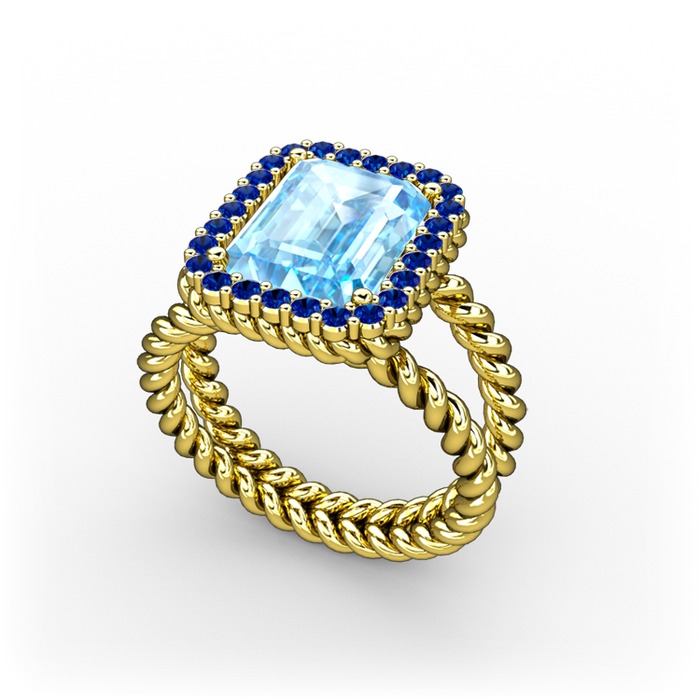Akuamarin ve lab safir 925 ayar altın kaplama gümüş yüzük