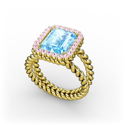 Akuamarin ve pembe kuvars 8 ayar altın yüzük