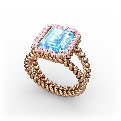 Akuamarin ve pembe kuvars 925 ayar rose altın kaplama gümüş yüzük