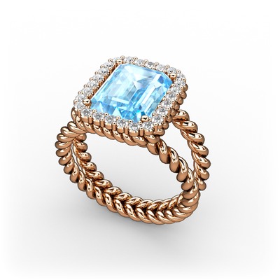 Akuamarin ve pırlanta 925 ayar rose altın kaplama gümüş yüzük (0.39 karat)