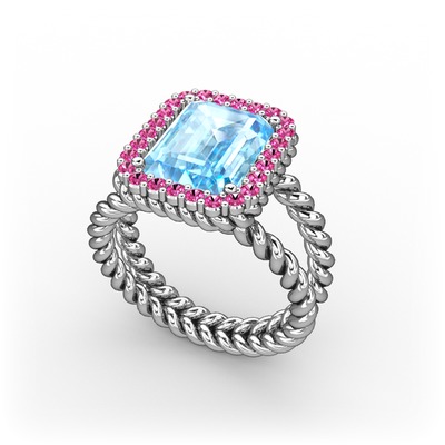 Akuamarin ve rodolit garnet 14 ayar beyaz altın yüzük