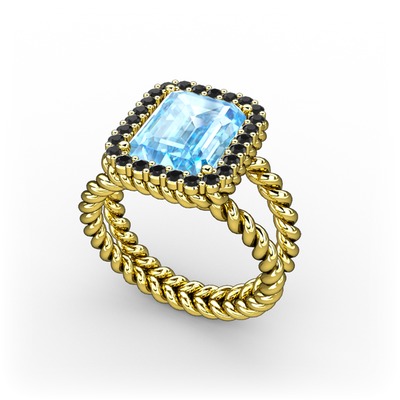 Akuamarin ve siyah zirkon 14 ayar altın yüzük