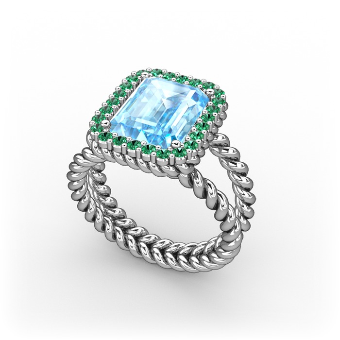 Akuamarin ve yeşil kuvars 925 ayar gümüş yüzük