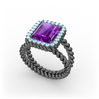 Ametist ve akuamarin 925 ayar siyah rodyum kaplama gümüş yüzük