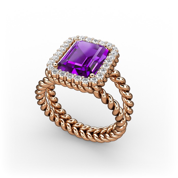Ametist ve beyaz zirkon 18 ayar rose altın yüzük