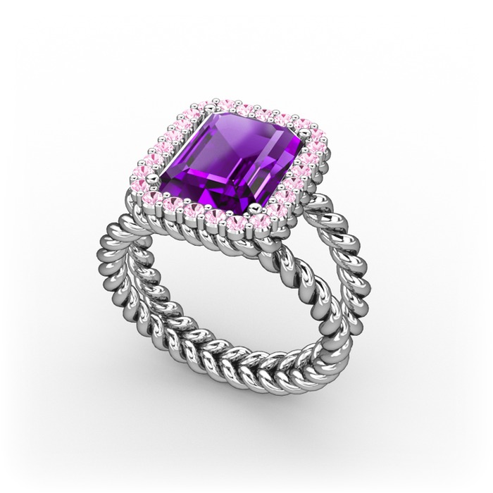 Ametist ve pembe kuvars 14 ayar beyaz altın yüzük