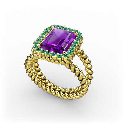 Ametist ve yeşil kuvars 925 ayar altın kaplama gümüş yüzük