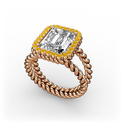 Beyaz zirkon ve sitrin 18 ayar rose altın yüzük