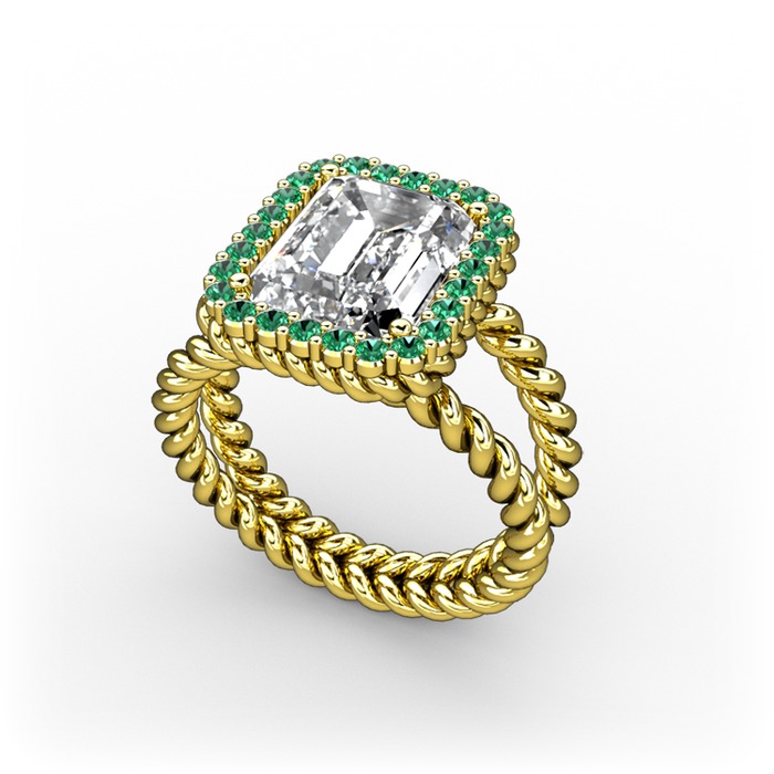 Beyaz zirkon ve yeşil kuvars 8 ayar altın yüzük