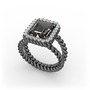 Dumanlı kuvars ve beyaz zirkon 925 ayar siyah rodyum kaplama gümüş yüzük