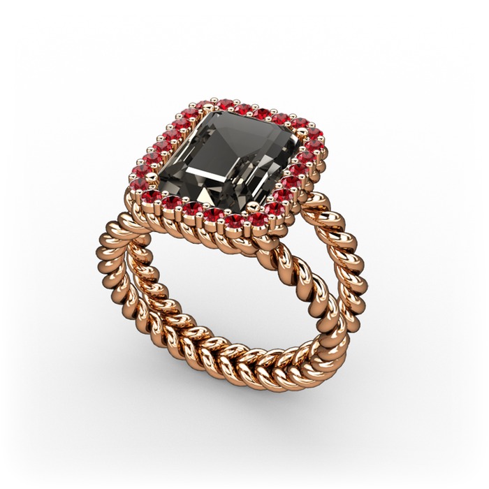 Dumanlı kuvars ve garnet 18 ayar rose altın yüzük