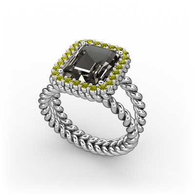 Dumanlı kuvars ve peridot 14 ayar beyaz altın yüzük