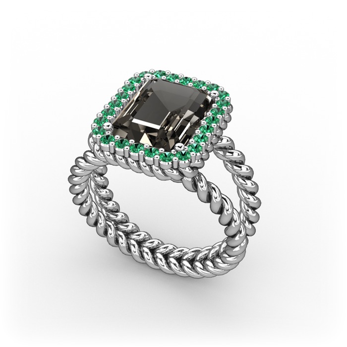 Dumanlı kuvars ve yeşil kuvars 14 ayar beyaz altın yüzük