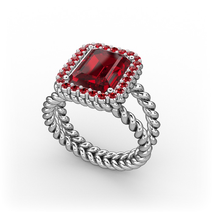Garnet 18 ayar beyaz altın yüzük