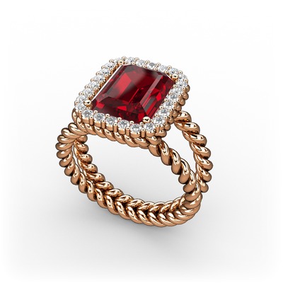 Garnet ve beyaz zirkon 14 ayar rose altın yüzük