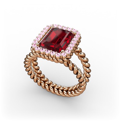 Garnet ve pembe kuvars 925 ayar rose altın kaplama gümüş yüzük