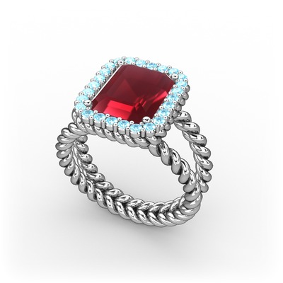 Kök yakut ve akuamarin 8 ayar beyaz altın yüzük