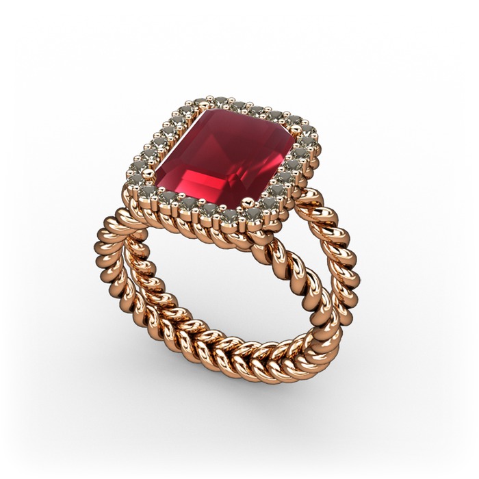 Kök yakut ve dumanlı kuvars 925 ayar rose altın kaplama gümüş yüzük