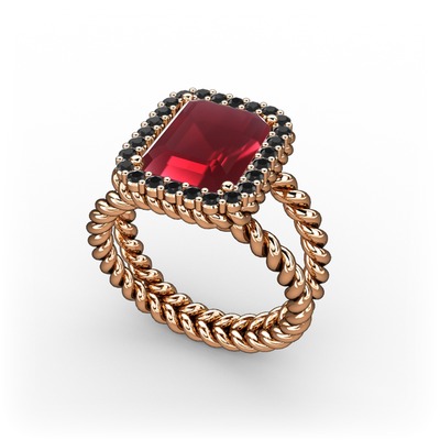 Kök yakut ve siyah zirkon 925 ayar rose altın kaplama gümüş yüzük